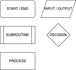 Flowcharts use these symbols: