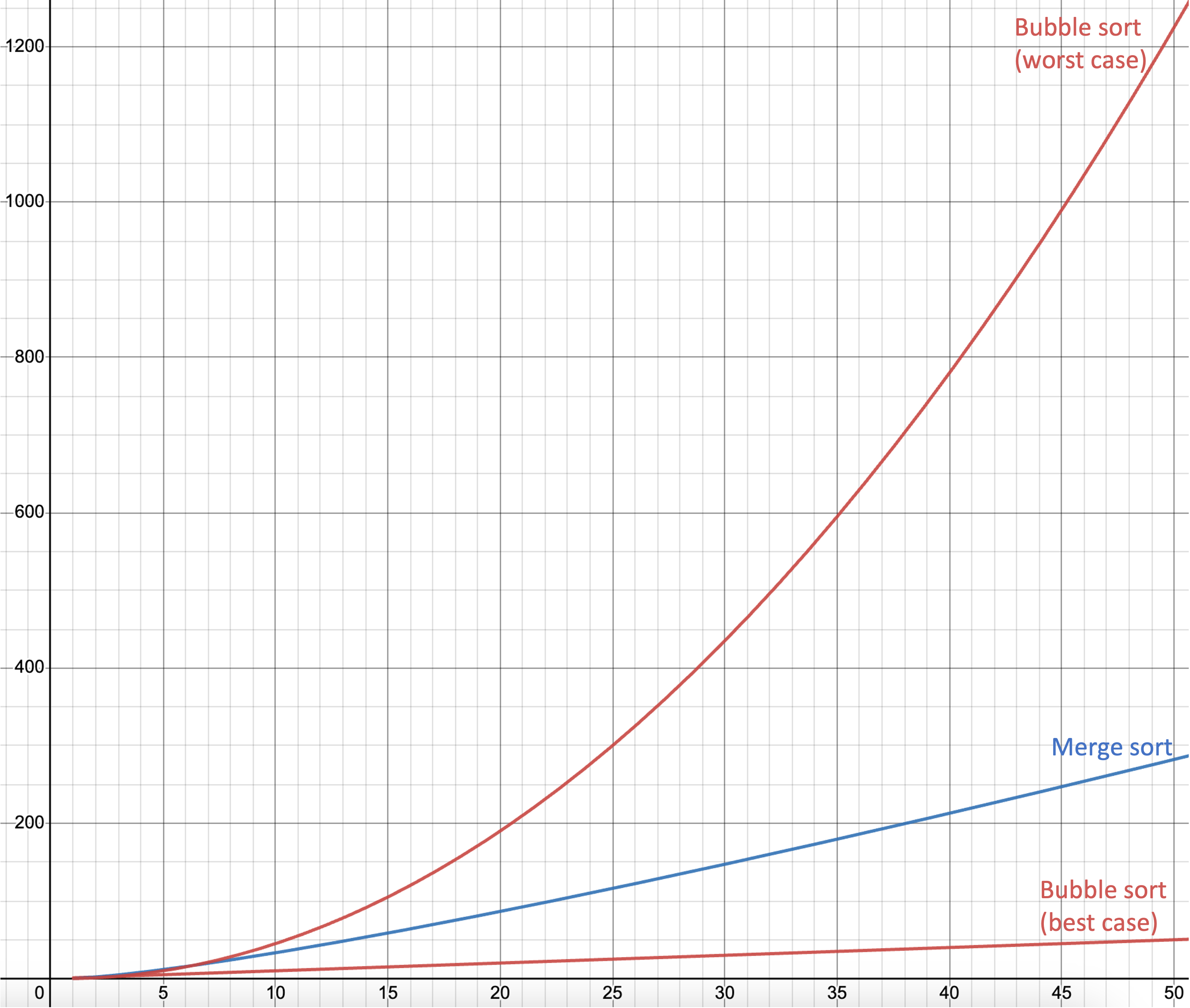 Tap/click to reveal Merge sort: it will always do exactly the same steps, even if the list is already sorted, whereas bubble sort will only go through one pass if it receives a sorted list.