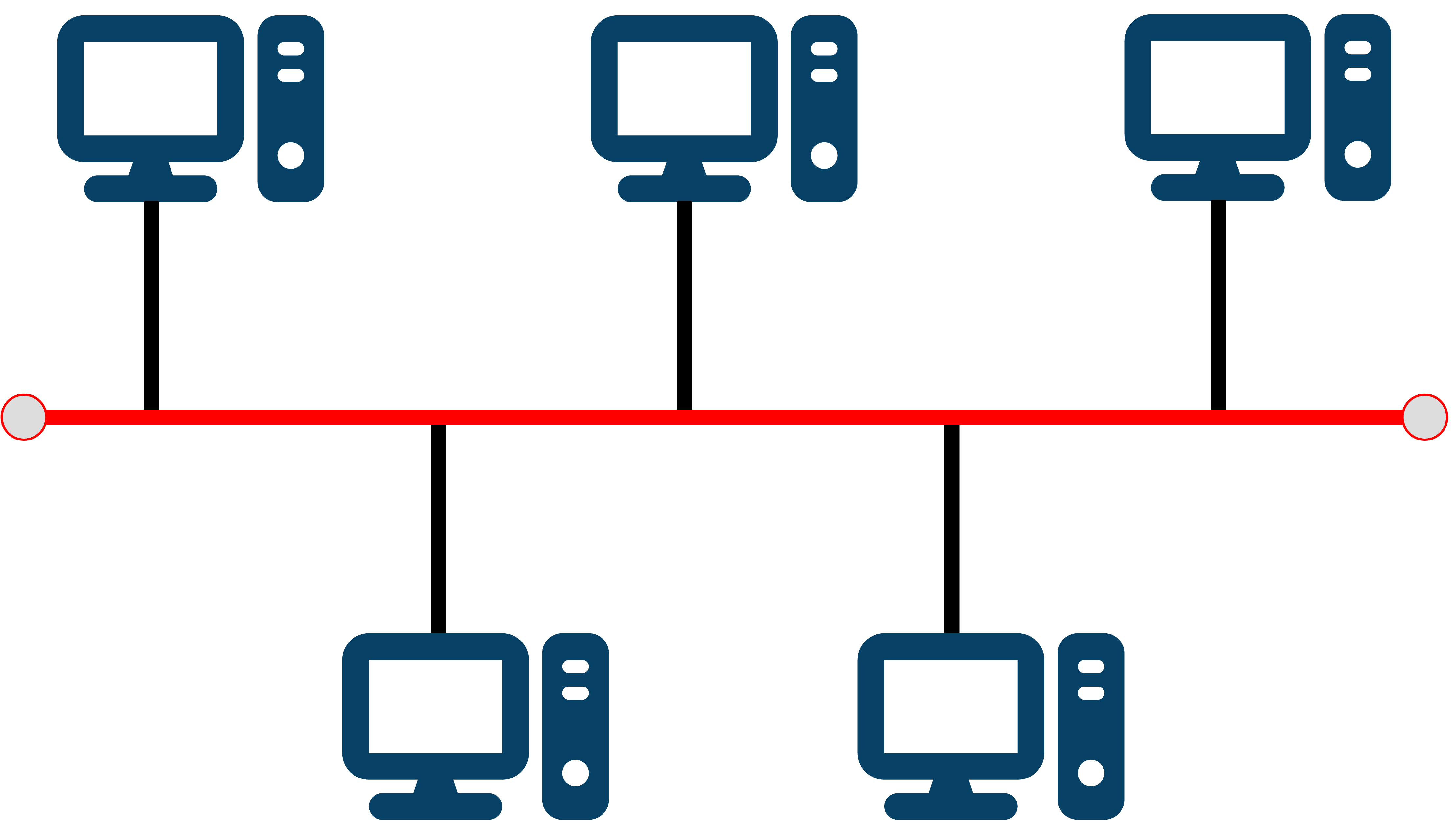 Draw five computers connected in a bus topology network. [2]
