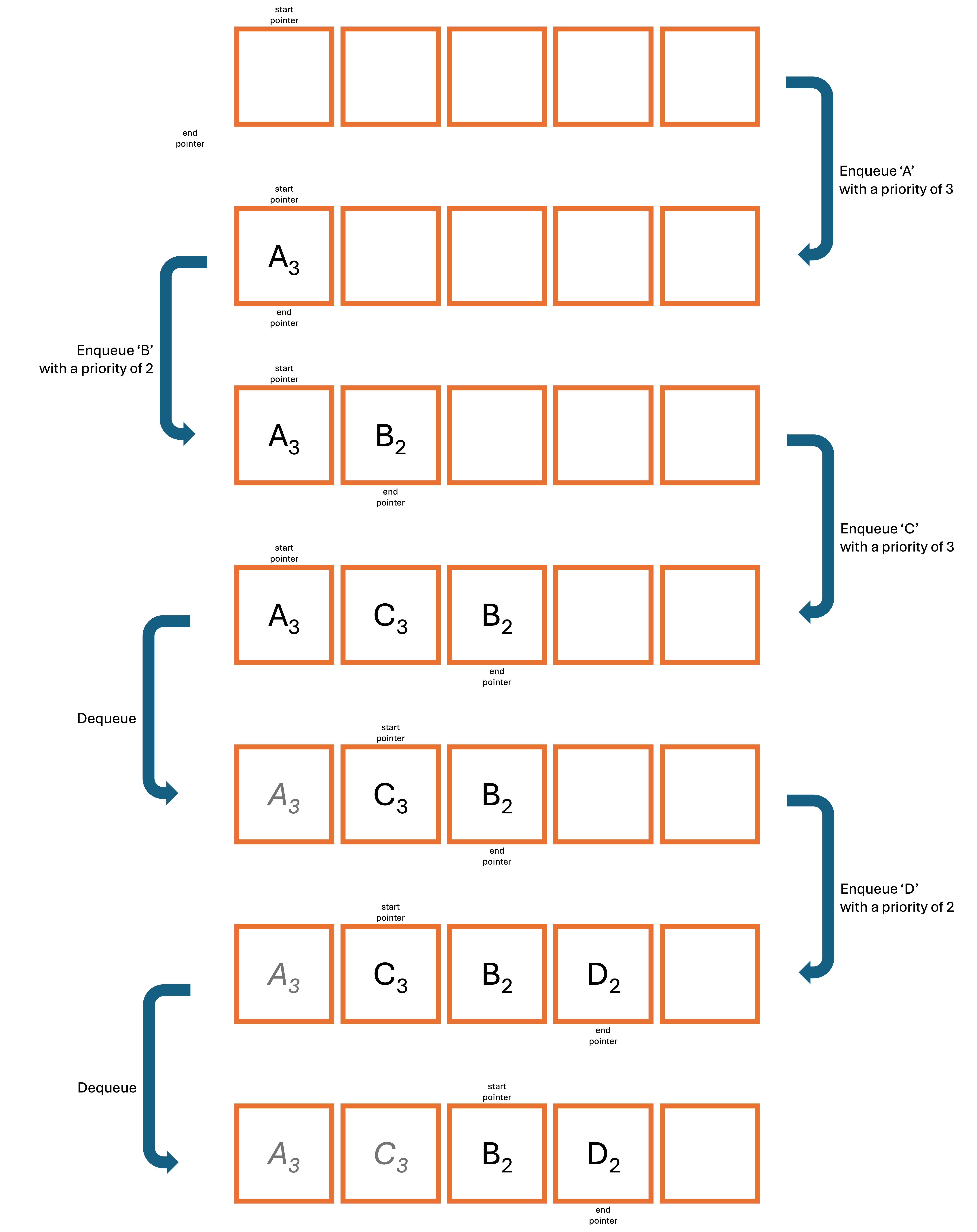 If data is sorted when enqueued (as shown in Diagram 1), the enqueue operation is O(n)
