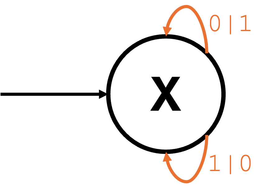 Diagram 3 shows a simple Mealy machine which flips the bits of a binary string.